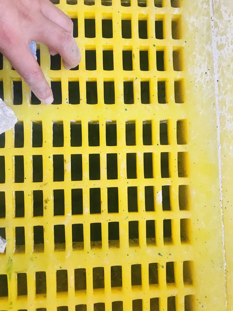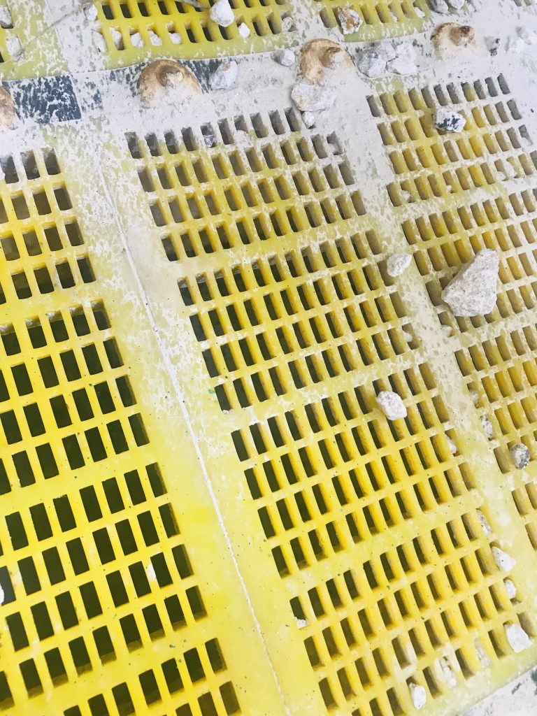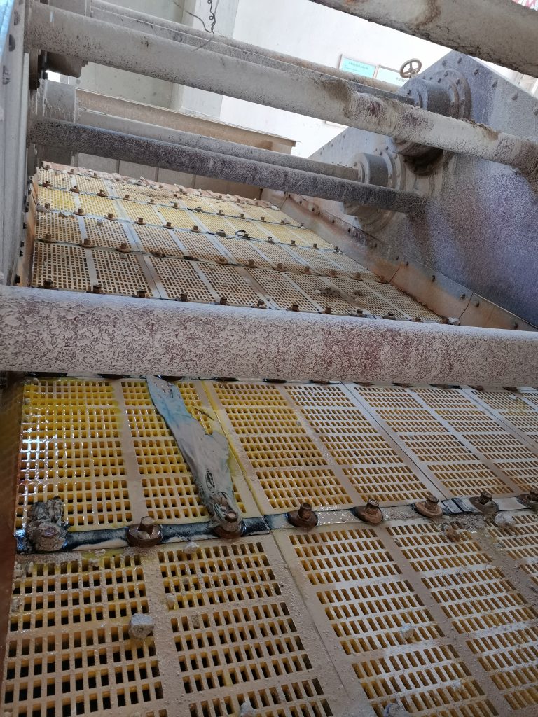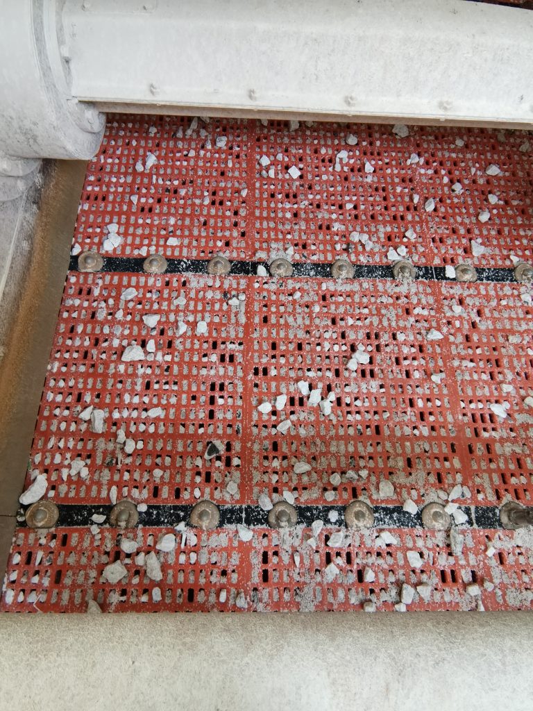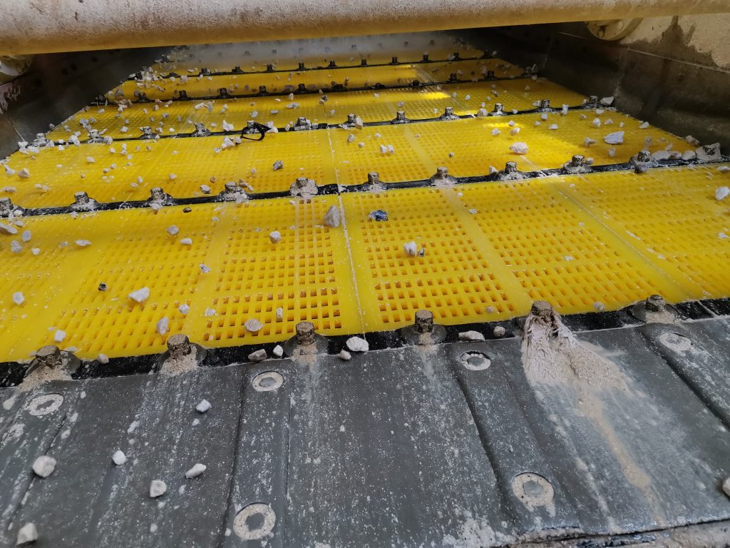 ? ? 無奈之下,宜春鉭鈮礦的工作人員準備使用某國外著名品牌的橡膠篩網,但更換成本高、改造時間長等因素讓他們一直猶豫。在猶豫之時,南昌鑫力的技術人員為他們帶來了滿意的解決方案,即不改變原篩網結構型式,將原來14x30mm的孔改為12x30mm,將普通聚氨酯篩網更換為南昌鑫力生產的MDI雙硬度防堵篩網。該方案得到了江鎢集團領導和宜春鉭鈮礦領導的認可,雙方于2020年3月簽訂了合同,4月26日篩網安裝完成并投入使用。